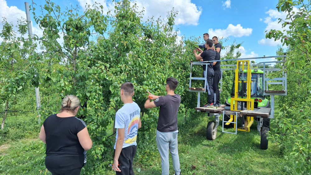 Polaznici su prorjeđivali plodove ručno uz pomoć škara s tupim vrhom a kako bismo prorjedu odradili i u vršnim dijelovima voćke, dio polaznika je prorjedu vršio uz pomoć vučene platforme.