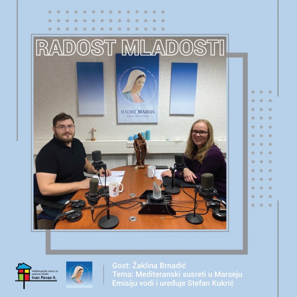 U drugoj epizodi emisije Radost mladosti koju uz Radio Mariju BiH uređuje i realizira Nadbiskupijski centar za pastoral mladih Ivan Pavao II, ugostili smo Žaklinu Brnadić, djelatnicu Nadbiskupijskog centra za pastoral mladih Ivan Pavao II. Tema ove emisije bili su Mediteranski susreti koji su održani u Marseju, u Francuskoj, od 16. do 24. rujna ove …