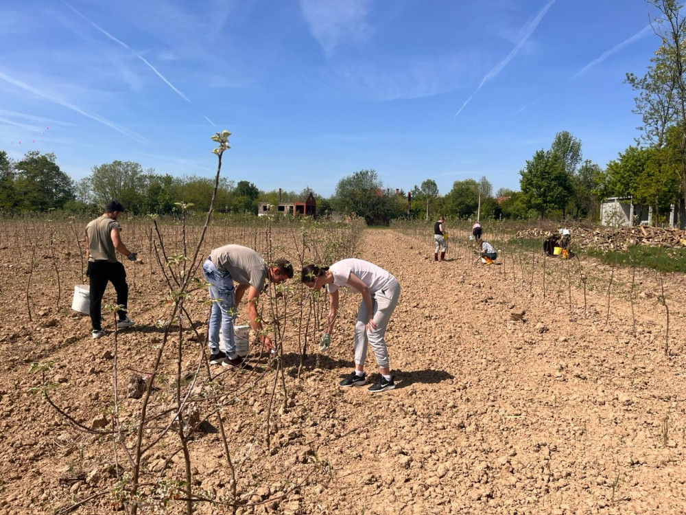 U subotu 13. travnja održana je peta edukacija na projektu Iuvenes fructus. Na teorijskom dijelu edukacije polaznici su slušali o temi Podizanja voćnjaka- novih nasada. Onoga trenutka kada se javi ideja, odnosno, želja, za podizanjem voćnjaka, treba imati u vidu o kojim stvarima je potrebno prethodno povesti računa, obzirom da se radi o jednoj veoma skupoj investiciji, koja bi trebala trajati godinama. Upravo zbog toga, onaj tko planira zasaditi voćnjak, trebao bi početi od same analize zemljišta. Analiza će pokazati da li je tlo uopće pogodno za sadnju određenog voća, a zatim je potrebno prilagoditi teren. Prilagoditi teren znači skicirati voćnjak- pomno isplanirati razmake sadnje, položaj voćnjaka, izravnati teren i dr. Zatim, potrebno je odabrati zdrave bezvirusne sadnice, propisno ih tretirati i posaditi. Sve predradnje na prostoru podizanja zasada će se odraziti na budućnost voćnjaka. Zato ih je jako važno kvalitetno odraditi i ništa ne prepustiti slučaju.