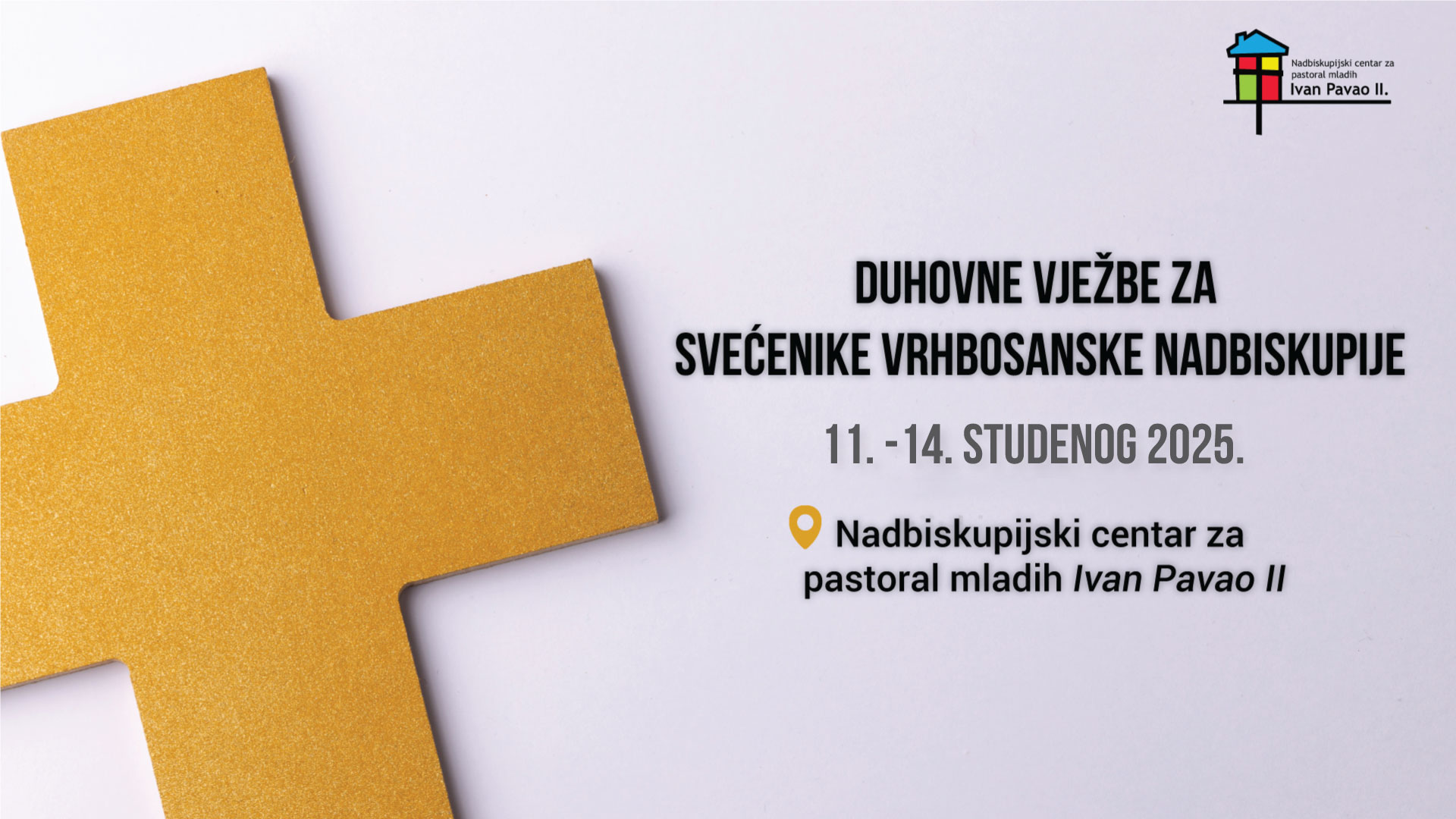 U suradnji sa Nadbiskupijskim centrom za pastoral mladih Ivan Pavao II., dajemo mogućnost i pozivamo sve svećenike koji su voljni, a posebno one koji nisu imali ove godine duhovne vježbe da dođu u Centar za pastoral mladih Ivan Pavao II. od 11. do 14. studenog 2025.