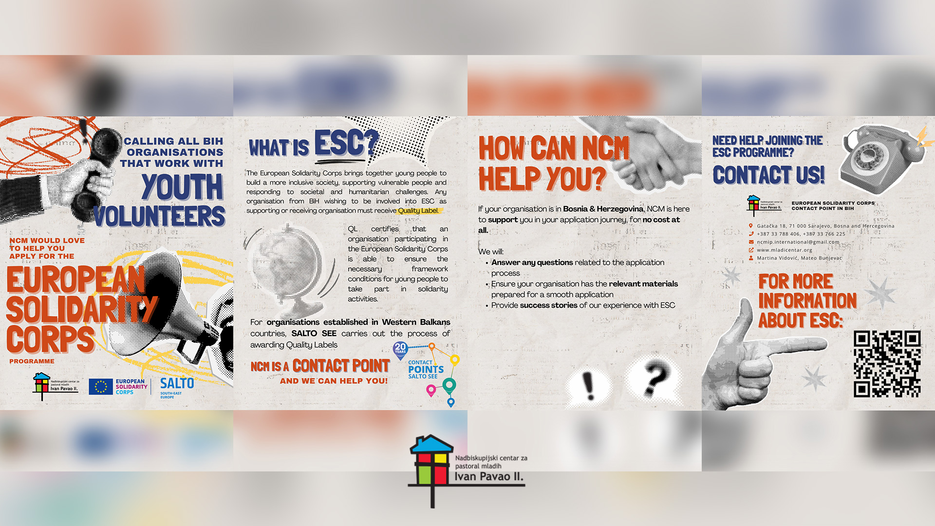As the official ESC Contact Point in BiH, the Youth Centre John Paul II (NCM) is here to guide you.