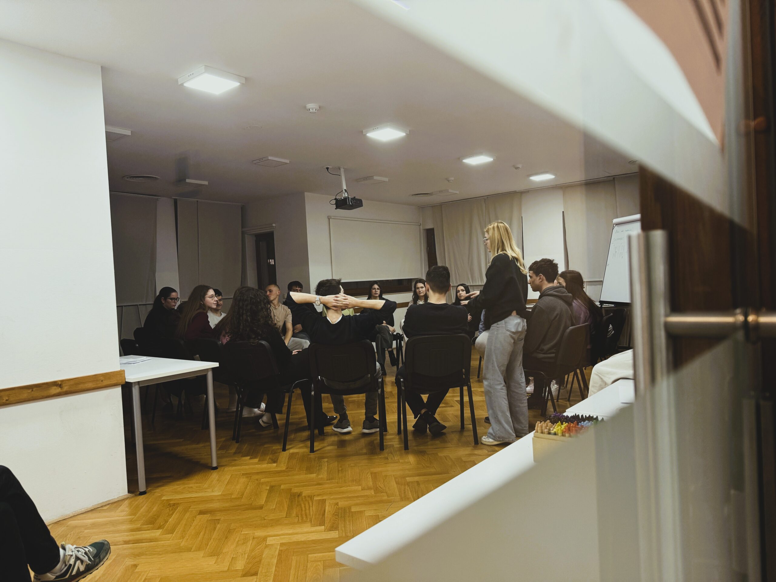 U večernjem dijelu programa, koristeći interaktivne alate i grupni rad, sudionici su otvarali pitanja o ulozi mladih u društvu te kroz aktivnost Doprinos društva meni analizirali kako na njihove živote utječu prijatelji, škola, zajednica i država. Dan je zaključen projekcijom filma The Swimmers, koji je poslužio kao uvod u razgovor o slobodi medija, odgovornosti novinarstva i pritiscima moći.