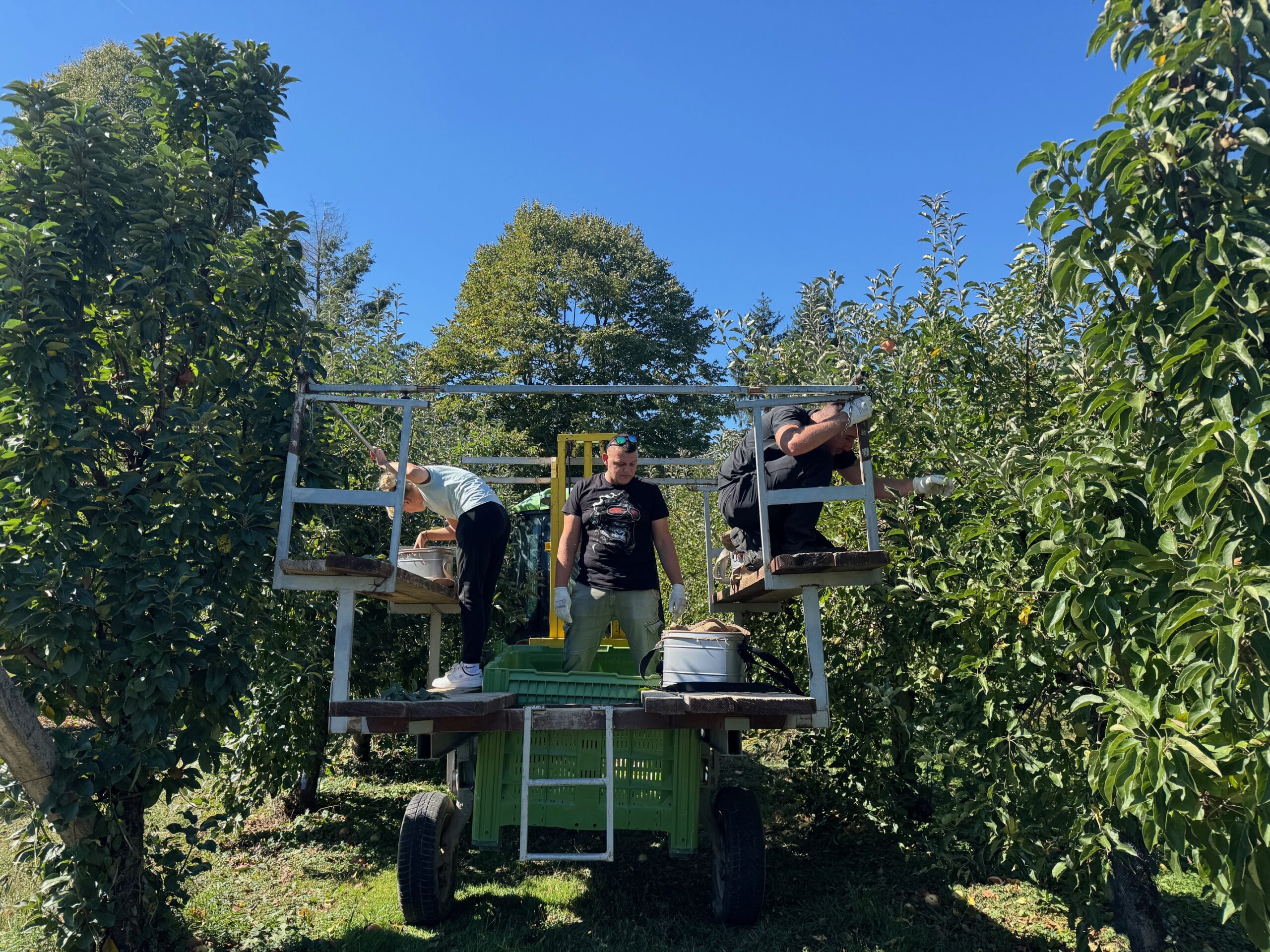 U praktičnom dijelu edukacije polaznici su pristupili berbi konzumne jabuke. Za određivanje odgovarajuće veličine ploda koristili su kalibrator. Prilikom berbe koristili su kengur torbe namijenjene isključivo za berbu plodova, te su plodove istresali u boksove koji služe za lakšu manipulaciju, transport, skladištenje i čuvanje plodova. Nakon toga, uz pomoć vučene platforme, brali su plodove s vrhova voćaka.