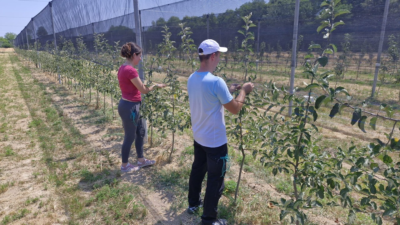 Prilikom održavanja praktičnog dijela edukacije predavač uvijek skrene pozornost polaznicima na mjere zaštite u voćnjacima koje je neophodno provoditi u vegetacijskoj sezoni. Polaznici su privezivali mlade sadnice uz naslon, što je jedna od osnovnih mjera njege u mladim nasadima kako bi sadnice mogle normalno rasti i razvijati se u određeni uzgojni oblik.
