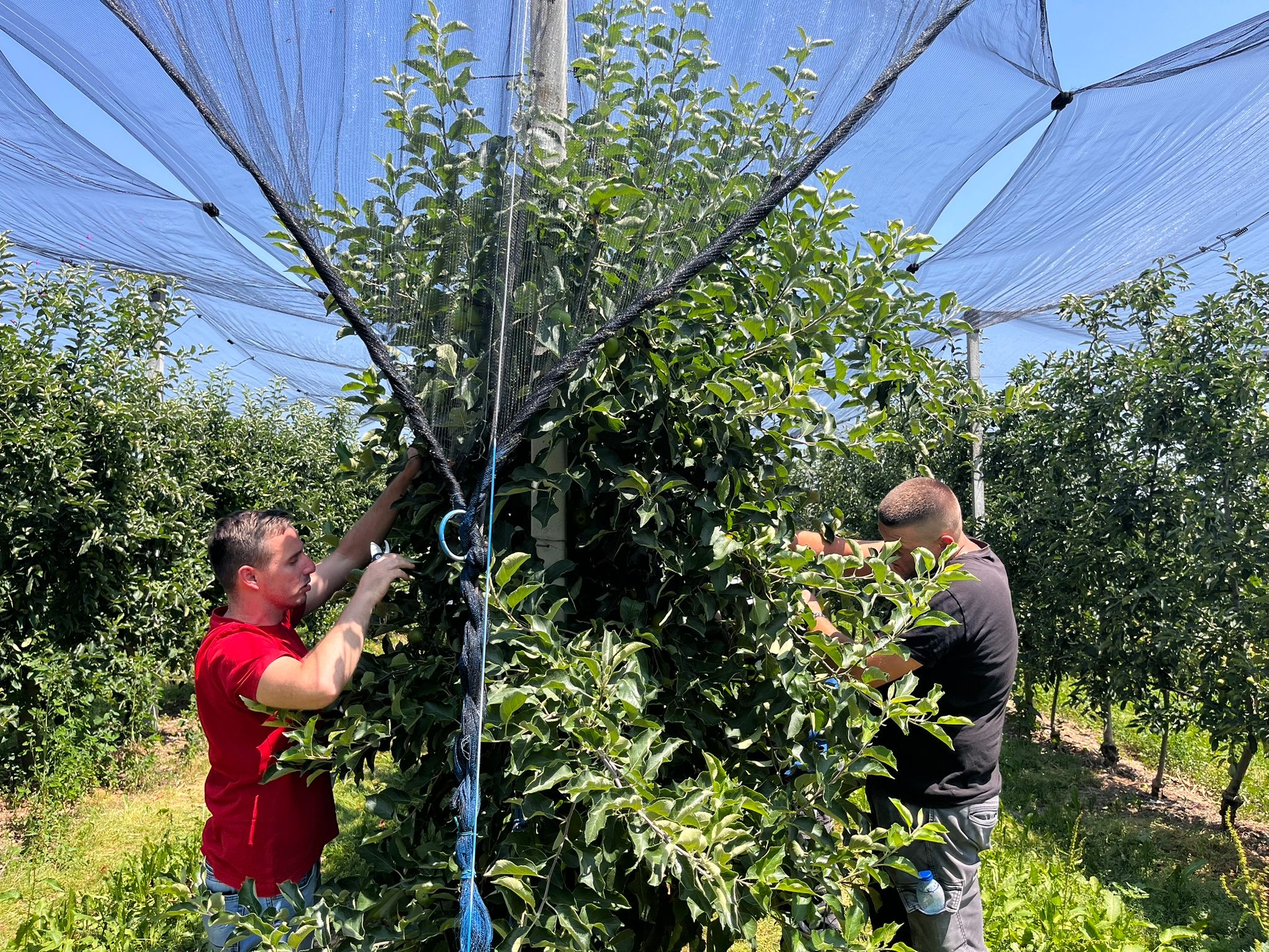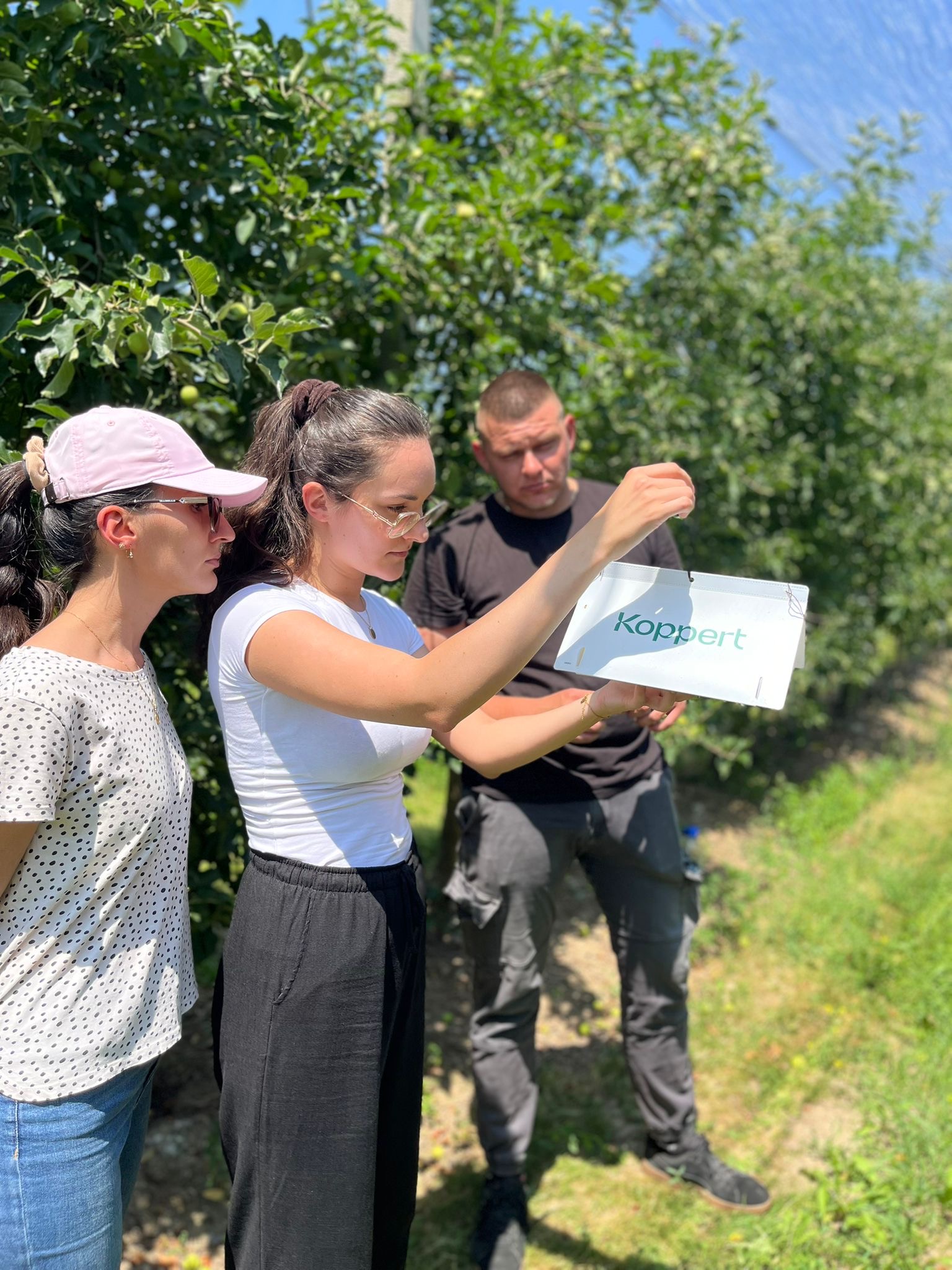 U praktičnom dijelu edukacije polaznicima je demonstriran delta trap s feromonima – klopka koja se koristi za determinaciju prisutnosti jabučnog savijača, jednog od najčešćih štetnika koji se javlja u nasadima jabuke. U nastavku su polaznici pristupili redovnim mjerama njege, tj. vršili su ručnu prorjedu plodova. Prorjeđivanje su vršili uz pomoć posebnih škara s tupim vrhom. Ovaj zahvat se primjenjuje s ciljem postizanja plodova prve klase.
