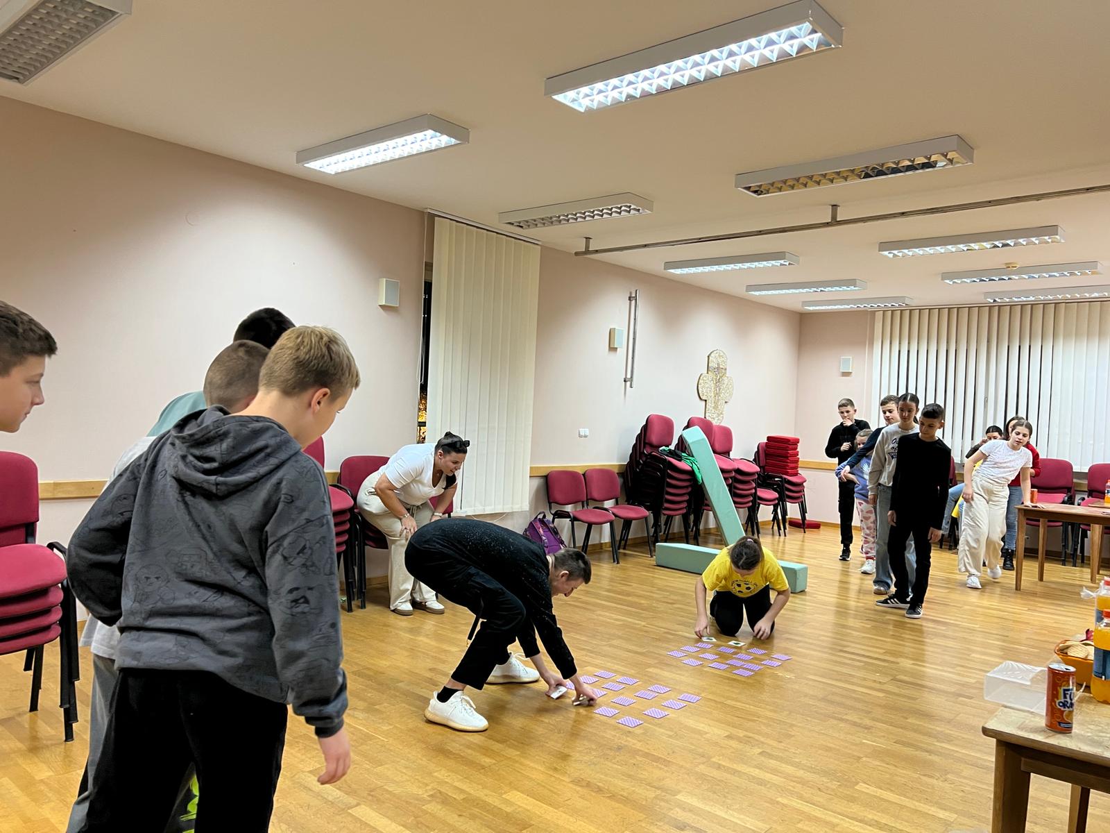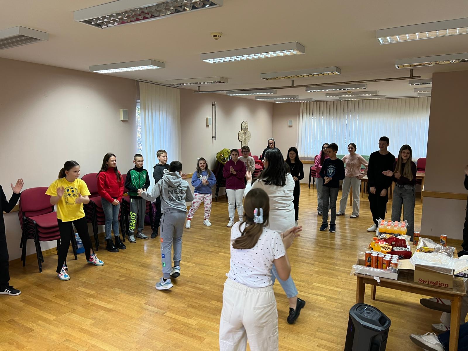 Od samog početka susreta osjetila se vedra atmosfera i uzbuđenje među djecom. Dvoranom su odzvanjali smijeh, glazba i veseli žamor, dok su youth workeri s puno pažnje i energije vodili razne igre i radionice. Kroz jednostavne, ali maštovite aktivnosti poticala se kreativnost, suradnja i međusobno povjerenje.