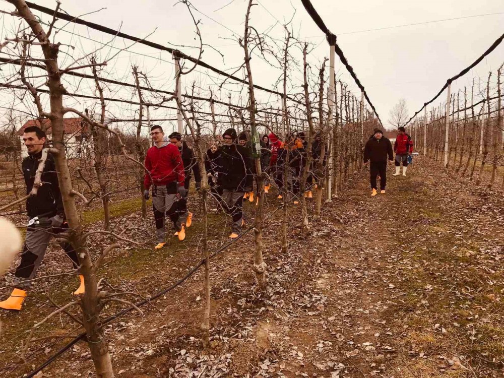 Nakon teorijskog dijela predavanja, uslijedio je praktični dio na terenu, odnosno u voćnjaku, gdje su kandidati na konkretnim primjerima mogli vidjeti ono što su čuli u teorijskom dijelu nastave. Profesorica Gorana Benković kandidate je najprije upoznala s općim ustrojem i osnovnim morfološkim značajkama voćke, s naglaskom na razliku između vegetativnih i generativnih pupova te prepoznavanju rodnih grančica. Budući da se u voćnjacima trenutno obavlja rezidba kao jedna od redovnih mjera njega, polaznici su imali priliku okušati se i u rezidbi, koja postaje mnogo jednostavnija kada se upozna morfologija pojedine voćke.